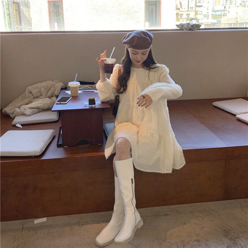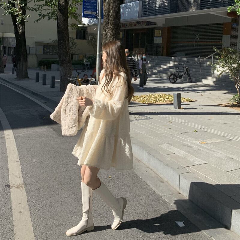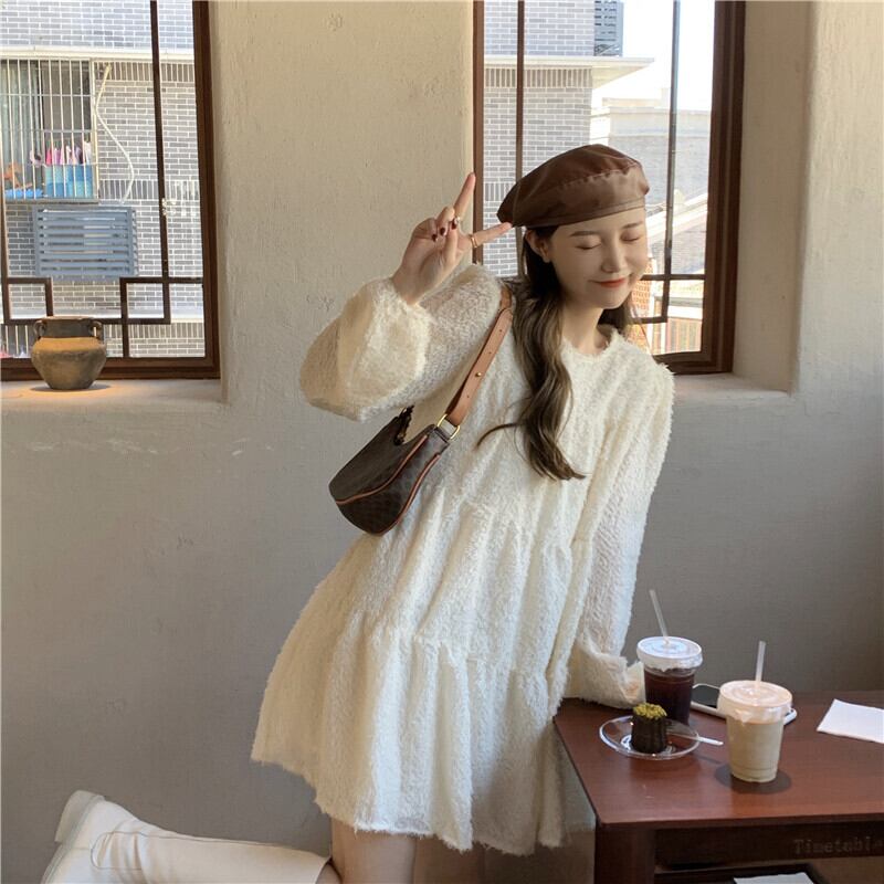 ワンピース フレアワンピース ティアードワンピース 膝丈 ひざ丈 膝上 袖あり 長袖 萌袖 ラウンドネック 襟なし フレア Aライン 切り替えデザイン ふわふわ かわいい 大人可愛い カジュアル おしゃれ お洒落 レトロ 大人女子 ラブリー キュート ガーリー 主役級 存在感 とろみ感 無地 秋 冬 10代 20代 30代 レディース デート ファッション コーデ 楽ちん 暖かい モテ S M L ゆる 白 ホワイト