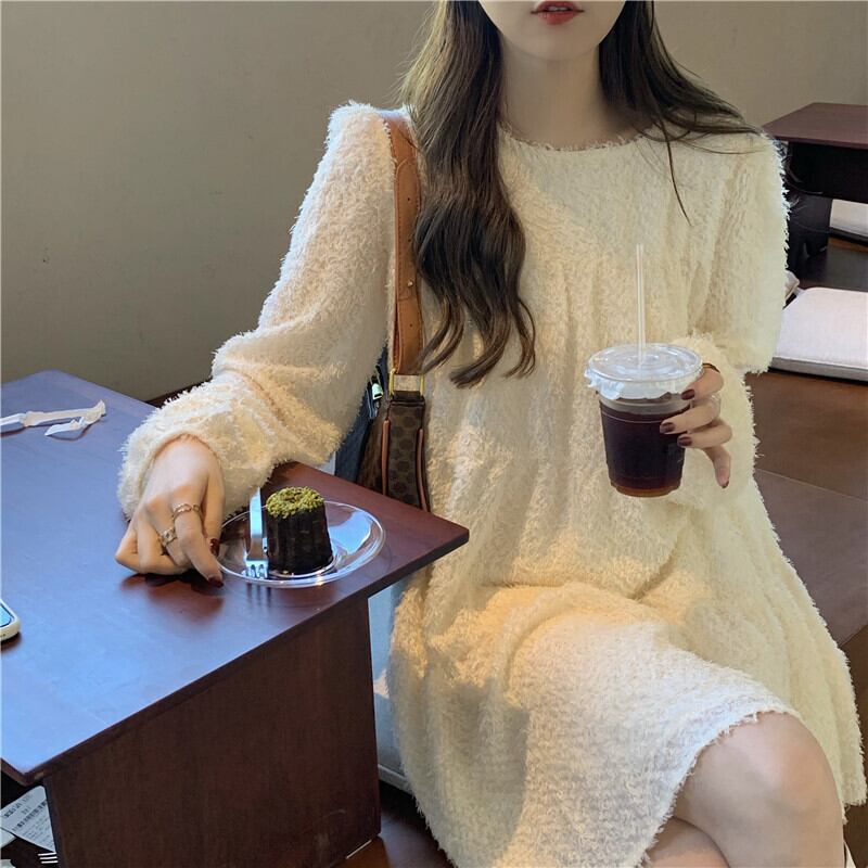 秋冬に嬉しいふわっと暖かい雰囲気のミッドレングスワンピース。