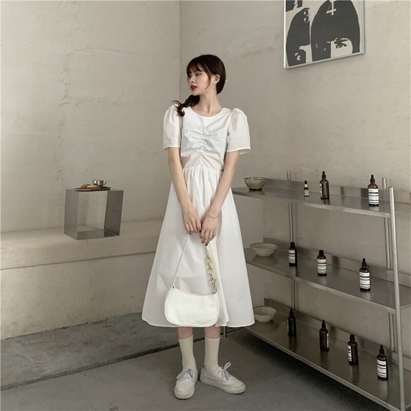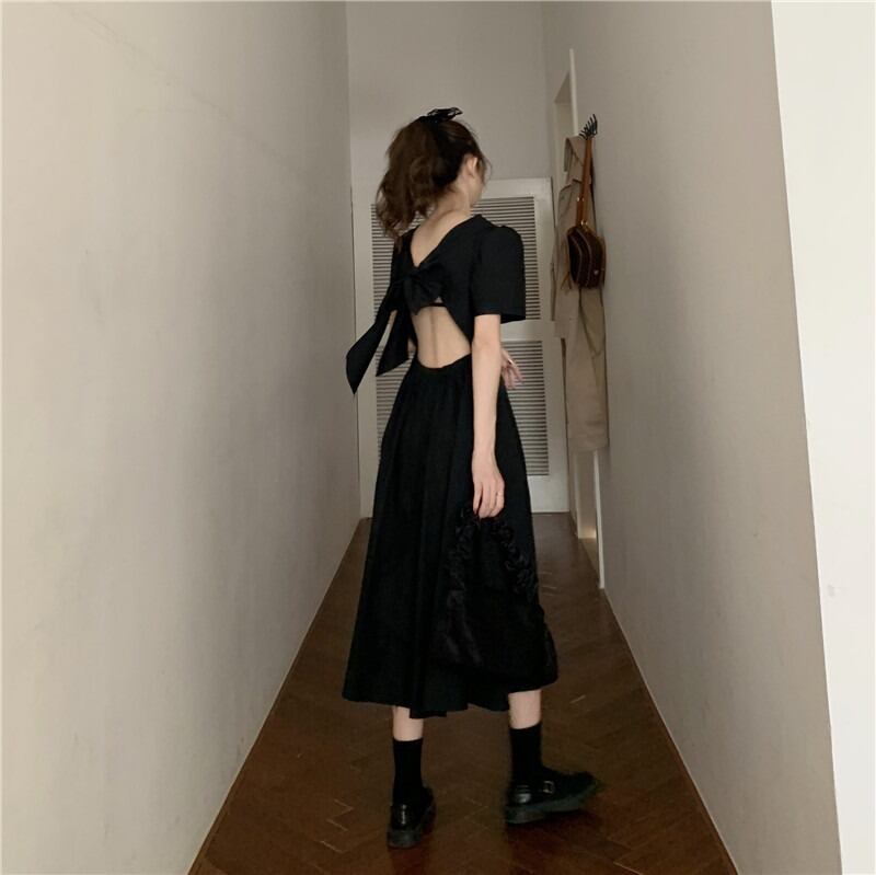 ワンピース マキシ丈ワンピース マキシ丈 マキシ丈ワンピ 半袖ワンピース 半袖 背中あき バックシャン バックリボン リボン シンプル 無地 ホワイト ブラック ブルー 白 黒 青 S M L XL 2XL 大きいサイズ プラスサイズ 10代 20代 かわいい 可愛い 甘め フェミニン フレンチ Aライン Aラインワンピース ハイウエスト パフスリーブ トレンド トレンド感 こなれ感 おしゃれ キュート ガーリー お出かけ デート 主役級 韓国 韓国ファッション 韓国コーデ レディース プルオーバー 清楚
