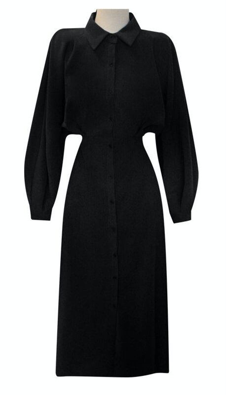ワンピース ペンシルスカート タイトスカート シャツワンピース ロング ロング丈 長袖 ボリューム袖 襟付き タイト 細身 切り替えデザイン ドッキング ウエストマーク ハイウエスト 前開き ボタン きれいめ シンプル 大人 上品 お洒落 大人可愛い 大人女子 こなれ感 エレガント モダン とろみ感 シック 無地 春 秋 20代 30代 40代 デート お出かけ ファッション スタイル S M L XL ブラック ベージュ ネイビー