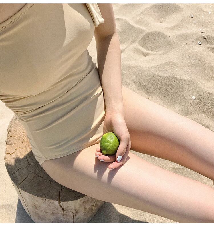 ワンショルダーのシンプルなワンピースタイプのスイムウェア。