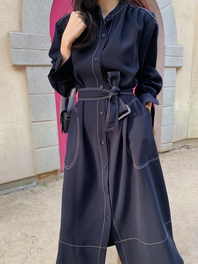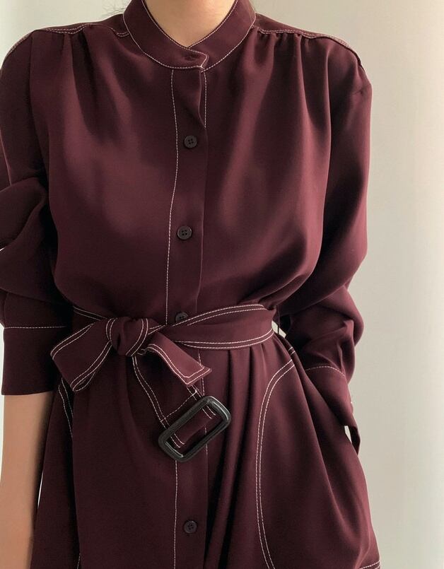 ワンピース コート 羽織り ロングスカート シャツワンピース ロング丈 長袖 スタンドカラー スマート ステッチ ベルト ウエストマーク ポケット 前開き 3way 大人可愛い きれいめ シンプル 上品 おしゃれ お洒落 かっこいい 大人女子 こなれ感 ルーズ エレガント モダン ナチュラル シック 無地 秋 20代 30代 50代 レディース デート お出かけ 着回し 重ね着 韓国 韓国系 ファッション コーデ スタイル S M L ワインレッド ネイビー くすみカラー 大人カラー 秋カラー