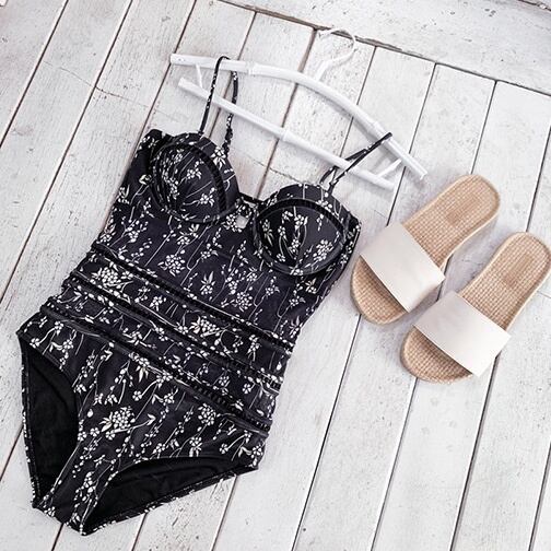 シースルーがセクシーなワンピースタイプの大人なスイムウェア。