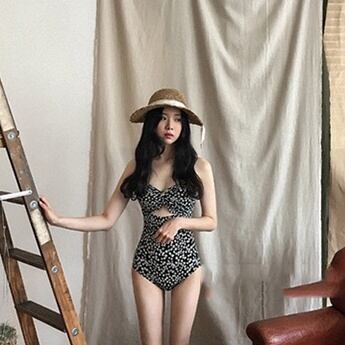 モノトーンの小花柄が大人可愛いワンピースタイプのスイムウェア。