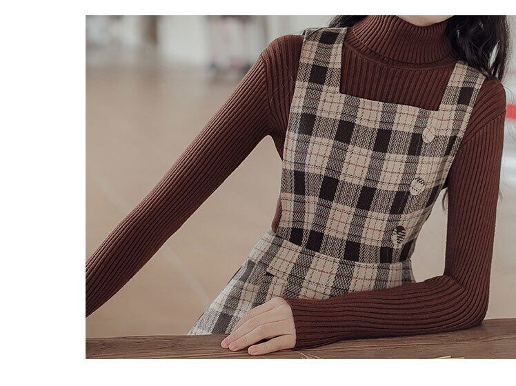 ワンピース トップス 2点セット 2ピース セットアップ チェック柄 チェック タータンチェック ジャンパースカート ミモレ丈 ミモレ丈スカート ハイネック ニットトップス ニットセーター リブニット リブニットトップス ベージュ ブラウン S M L お出かけ デート デイリー 普段使い 着回し 秋 冬 ガーリー キュート レトロ レトロかわいい 清楚 クラシカル 甘め 10代 20代 かわいい 可愛い 韓国ファッション 韓国スタイル 韓国コーデ レディース フレンチ レトロフレンチ ツーピース
