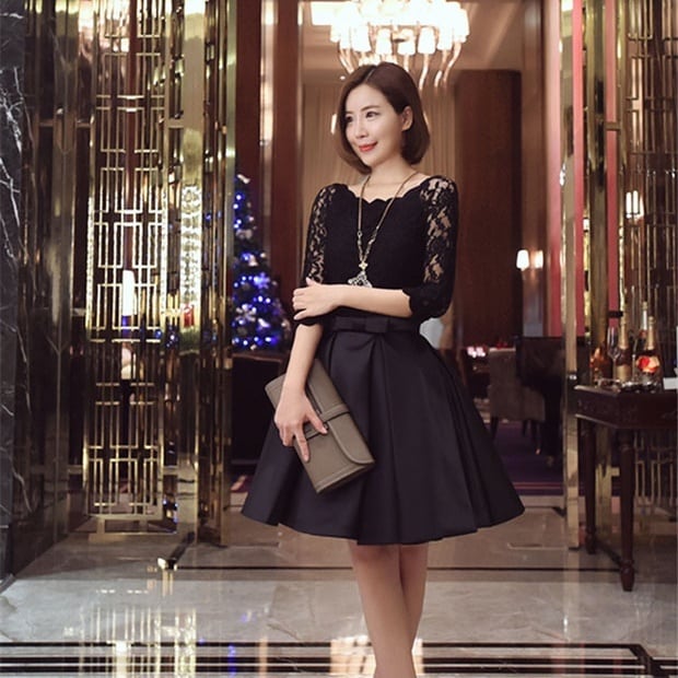 ドレス 衣装 パーティードレス 演奏会ドレス 演奏会用ドレス 発表会ドレス ステージドレス 膝丈 ひざ丈 袖あり 5分袖 ラウンドネック 襟なし プリンセス プリンセスライン 切り替えデザイン ドッキング プリーツ レース 刺繍 ウエストマーク ウエストリボン かわいい 大人 上品 おしゃれ お洒落 レトロ 大人可愛い ラブリー キュート ガーリー エレガント ゴージャス 華やか 主役級 ラブリー 20代 30代 レディース パーティー イベント お呼ばれ S M L XL ブラック レッド