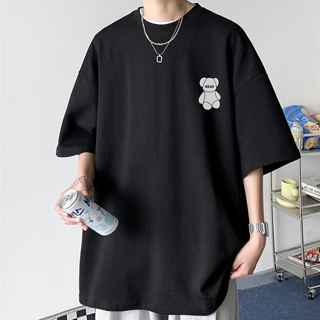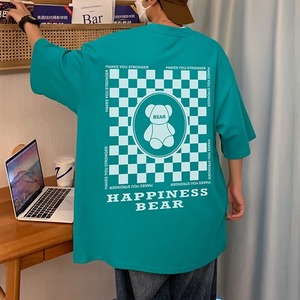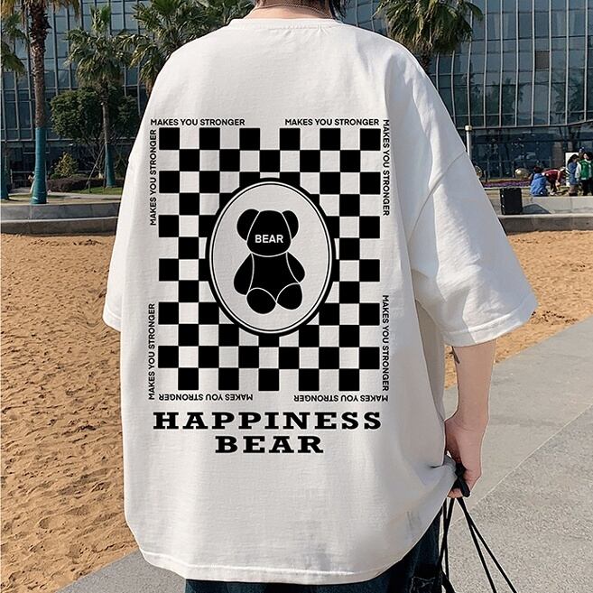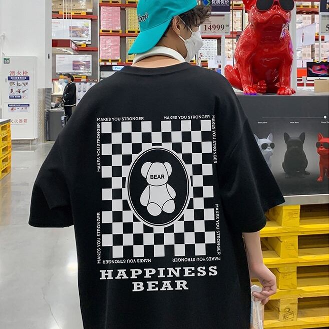 トップス Tシャツ ビッグT 袖あり 半袖 Uネック ワイド ルーズ くま 綿 シンプル カジュアル おしゃれ お洒落 かっこいい ラフ メンズライク ボーイッシュ スポーティー チェック柄 格子柄 プリント オールシーズン シーズンレス レディース メンズ 男女兼用 学生 お出かけ 運動 アウトドア 韓国 韓国系 オルチャン ファッション コーデ スタイル 楽ちん 体系カバー S M L XL 2XL 3XL 大きいサイズ 大きい ビッグサイズ ゆる ホワイト ブラック ブルー グリーン 水色