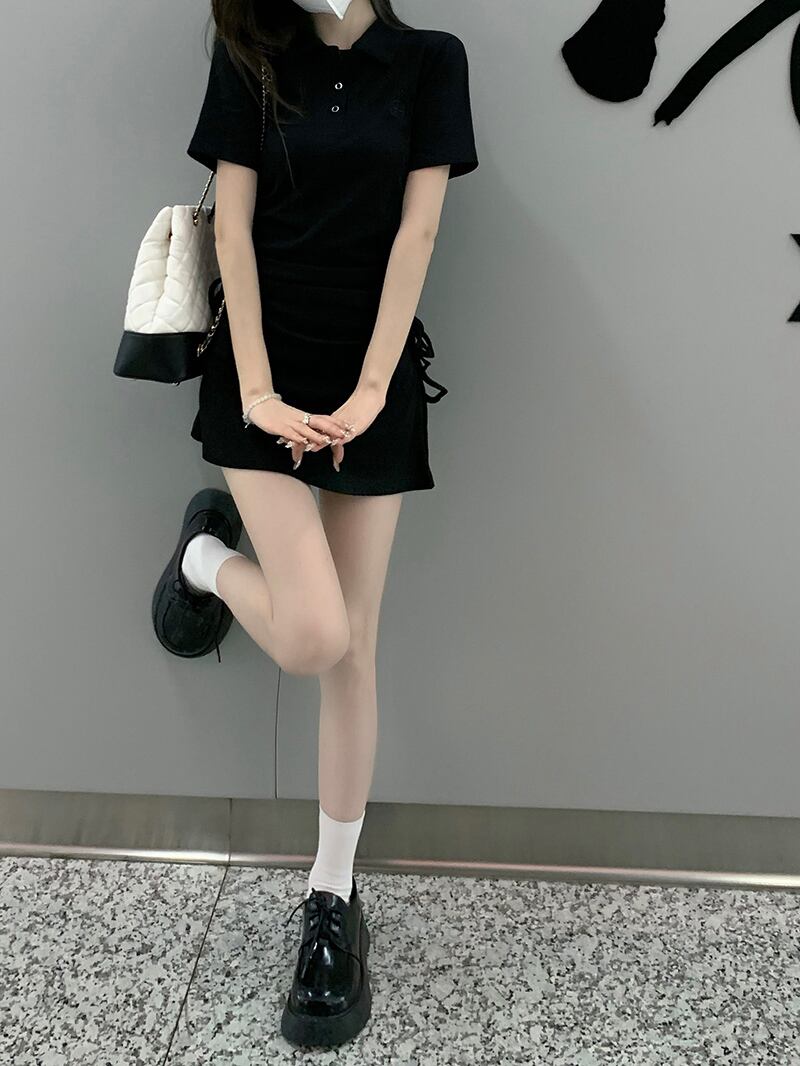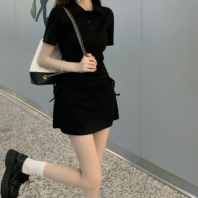 ワンピース ミニスカート ポロシャツワンピ ポロシャツワンピース ミニ ミニ丈 袖あり 半袖 襟付き スリム タイト 細身 リボン ギャザー サイドギャザー かわいい シンプル カジュアル おしゃれ お洒落 かっこいい レトロ 大人可愛い 大人女子 スポーティー こなれ感 セクシー 無地 春 夏 10代 20代 30代 レディース デート お出かけ 普段使い スタイル モテ S M L ホワイト ブラック ピンク 水色