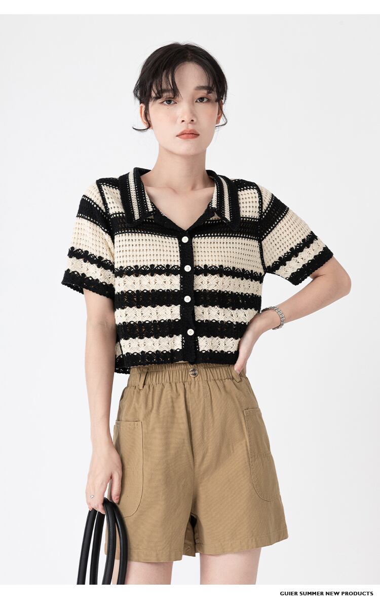 トップス ニットソー カーディガン ショート ショート丈 袖あり 半袖 襟付き 前開き ニット サマーニット 薄手 大人可愛い きれいめ シンプル カジュアル 大人 上品 おしゃれ お洒落 大人可愛い 大人女子 こなれ感 マニッシュ 個性的 クール モード系 エレガント モダン 主役級 存在感 抜け感 柄 ボーダー 春 夏 20代 30代 40代 レディース デート お出かけ 着回し 重ね着 ファッション コーデ S M L モノトーン