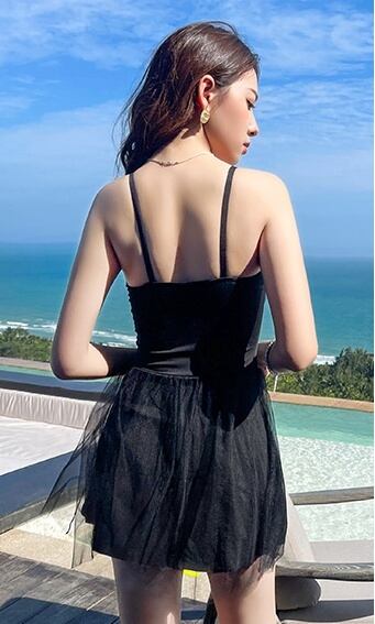 胸元やスカートのフリルがラブリーなスイムウェア。