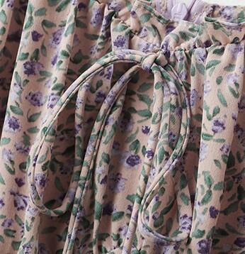 ワンピース ワンピドレス ロング ロング丈 袖あり 半袖 パフスリーブ スクエアネック 襟なし セミフレア スリム タイト フリル リボン ウエストマーク 薄手 かわいい 大人可愛い 上品 おしゃれ お洒落 レトロ 大人女子 こなれ感 ラブリー キュート ガーリー エレガント とろみ感 抜け感 柄 花柄 小花柄 フラワー 20代 30代 レディース デート お出かけ リゾート モテ L 紫 パープル