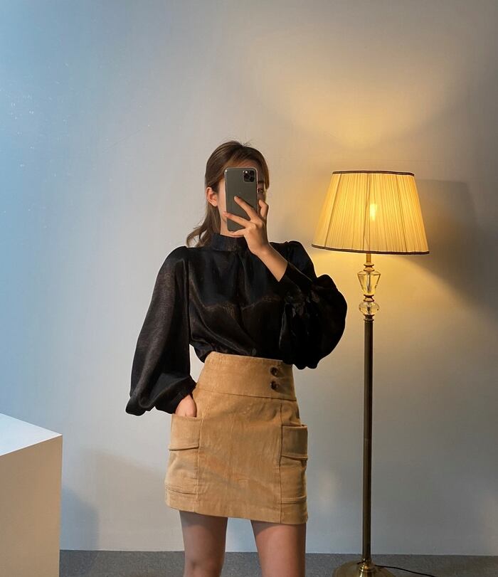ボリューム袖と光沢感のあるサテン生地で上品に♪