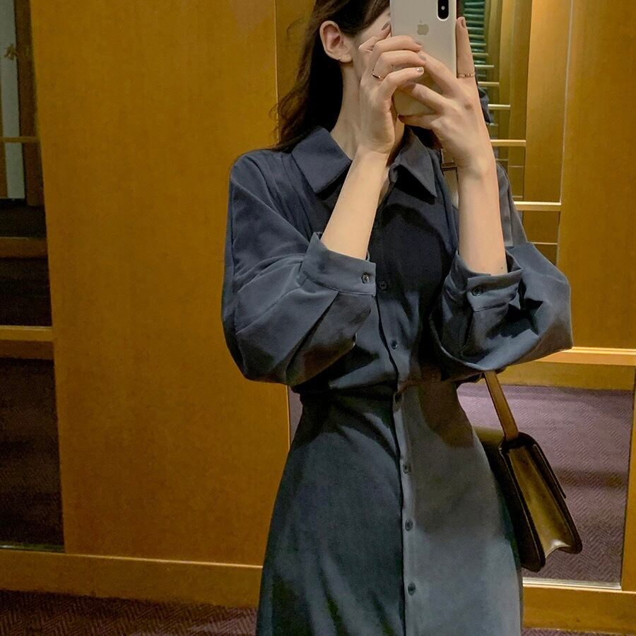 ワンピース シャツワンピース ロングワンピース ロング丈 ストレート ウエストマーク 長袖 襟付き Vネック フリーサイズ ワンサイズ ホワイト ブラック ネイビー ボタン 可愛い キュート きれいめ 無地 シンプル 上品 高見え 大人女子 大人可愛いキュート デート 女子会 お出かけ 休日 ショッピング ランチ ディナー ホテル 10代 20代 30代 40代 50代 コーデ ファッション トレンド 人気 春 秋 冬 お洒落 韓国系 オルチャン インスタ映え 送料無料 スタイル 着痩せ 体系カバー