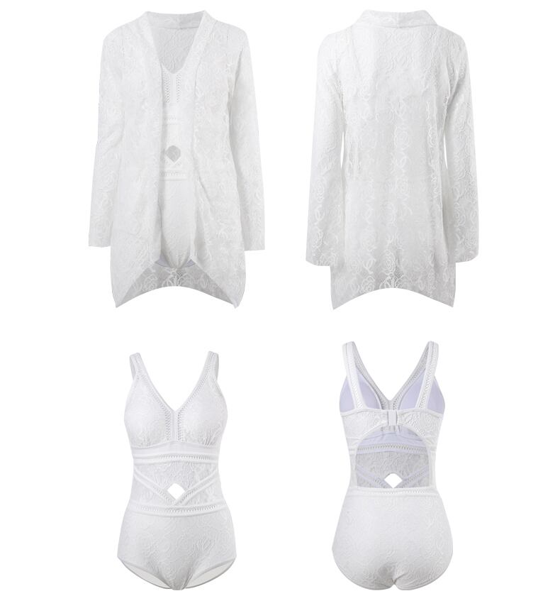 レースのワンピース水着とレースの羽織の2ピースセット。