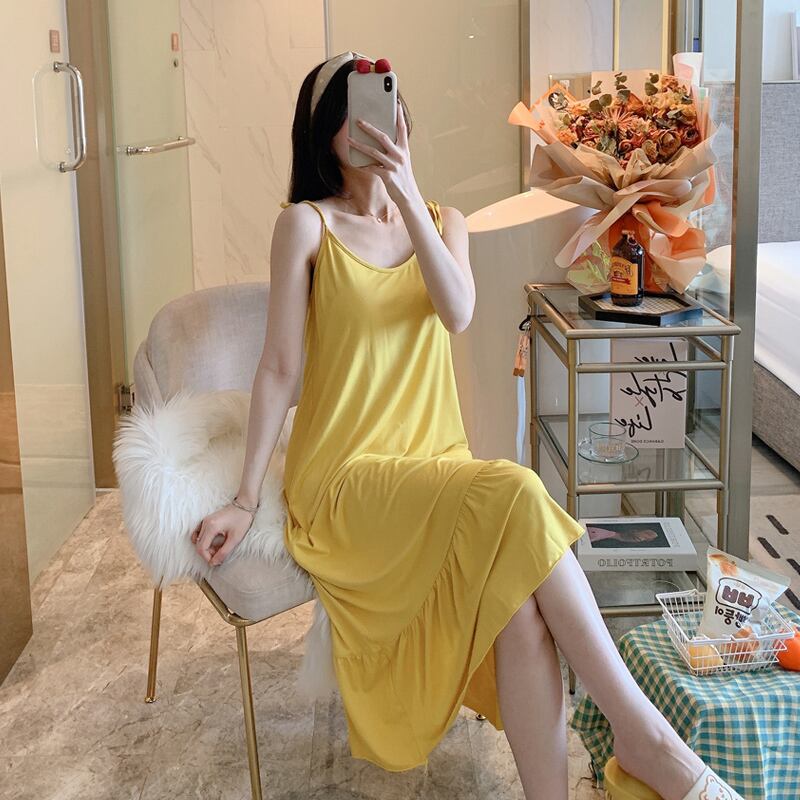 ワンピース 部屋着 寝巻き ナイトウェア ネグリジェ ロングスカート ワンピドレス パット付き パット付きワンピース ロング ロング丈 袖なし Aライン フリル 薄手 かわいい シンプル カジュアル おしゃれ こなれ感 ラフ ガーリー ルーズ 抜け感 リラックス 無地 夏 10代 20代 30代 40代 レディース お泊まり 楽ちん モテ 体系カバー M L XL 2XL ゆったり ゆる イエロー ピンク 水色