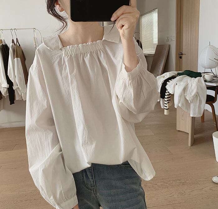 トップス シャツ ブラウス 無地 シンプル 長袖 スクエアネック 襟付き シフォン フリーサイズ ワンサイズ レディース 女性用 ラフ 楽ちん 大人可愛い 可愛い ナチュラル カジュアル ガーリー キュート 大人カジュアル ホワイト ベージュ グレー ブラック 10代 20代 30代 40代 デート 女子会 ショッピング 旅行 お出かけ 休日 カフェ ランチ コーデ ファッション トレンド 人気 春 秋 定番 お洒落 韓国系 オルチャン インスタ映え スタイル 着痩せ 体系カバー 公園デビュー ママ