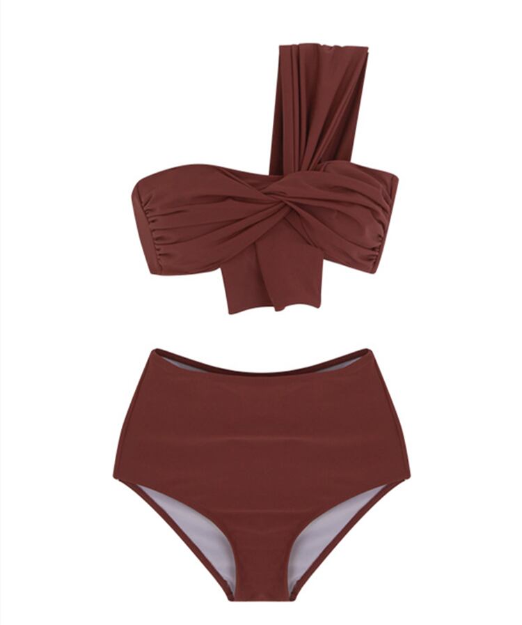 水着 スイムウェア 2ピース 2点セット 上下セット ビキニ ワンショルダー ワンショル シンプル 無地 ハイウエスト ホワイト ブラック ブラウン ピンクブラウン 白 黒 茶 M L XL 海 海水浴 ビーチ リゾート バカンス プール ナイトプール 温泉 サウナ 海デート デート セクシー 色気 色っぽ 大人 エレガント コンサバ フェミニン 強め ギャル かわいい 可愛い 大人 20代 30代 美スタイル スタイルアップ スプリット 美脚 足長 韓国 韓国コーデ 韓国ファッション 韓国スタイル