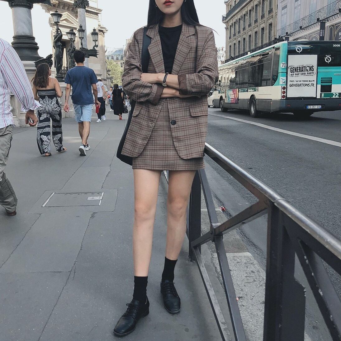 セットアップ ジャケット ミニスカート ミニ ミニ丈 袖あり 長袖 襟付き スリム タイト ストレート Iライン ポケット 前開き シンプル 大人 おしゃれ お洒落 かっこいい 大人可愛い 大人女子 こなれ感 マニッシュ クール モード系 エレガント モダン 主役級 存在感 柄 チェック柄 グレンチェック 春 10代 20代 30代 レディース 学生 デート お出かけ イベント 着回し ファッション コーデ スタイル モテ 美脚 脚長 S M L XL グレー