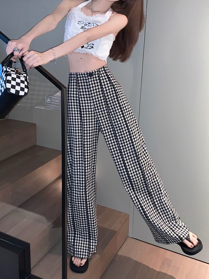 ボトムス パンツ ワイドパンツ ロング ロング丈 ワイド Aライン プリーツ ウエストマーク ハイウエスト ボタン ポケット ライン カジュアル おしゃれ お洒落 かっこいい シック 大人可愛い 大人女子 こなれ感 ルーズ 個性的 クール モード系 エレガント モダン 主役級 存在感 柄 チェック柄 格子柄 ギンガムチェック 春 夏 20代 30代 40代 レディース お出かけ 普段使い S M L モノトーン