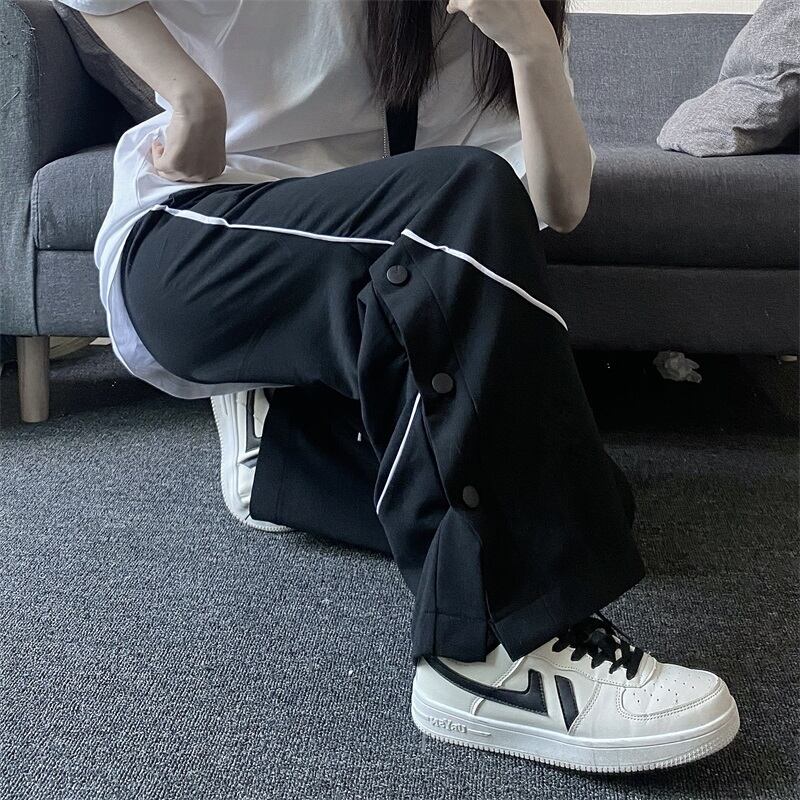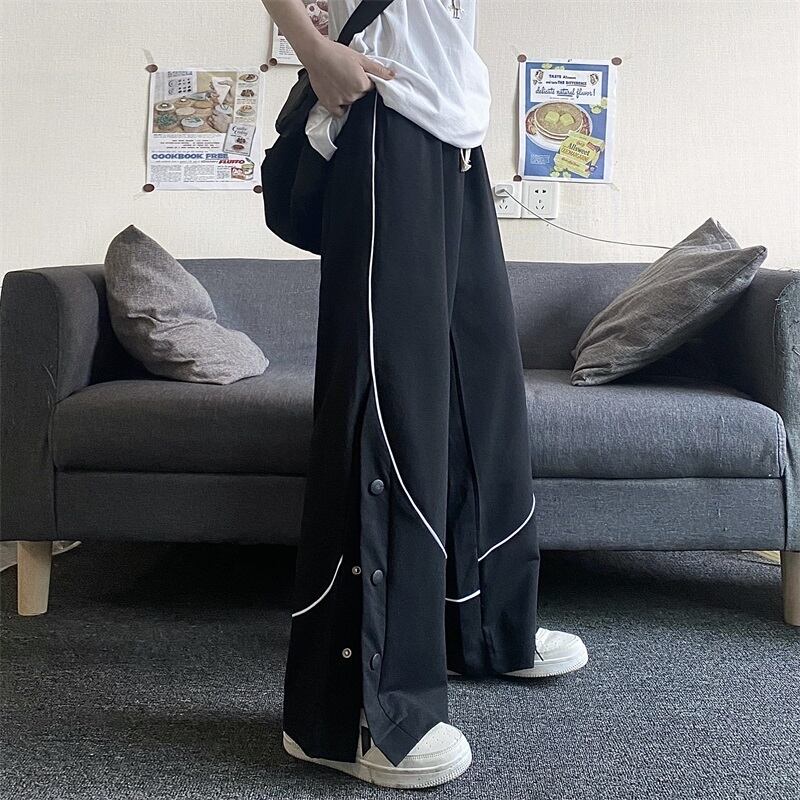 ボトムス パンツ スウェット ジャージ 部屋着 ワイドパンツ ストレートパンツ ロング ロング丈 ストレート ワイド ウエストリボン スリット サイドスリット ウエストゴム 綿 ポリエステル シンプル おしゃれ お洒落 かっこいい こなれ感 ラフ メンズライク スポーティー クール 無地 10代 20代 30代 40代 レディース 学生 休日 運動 ジム ヨガ 楽ちん 体系カバー ブラック グレー ライトグレー