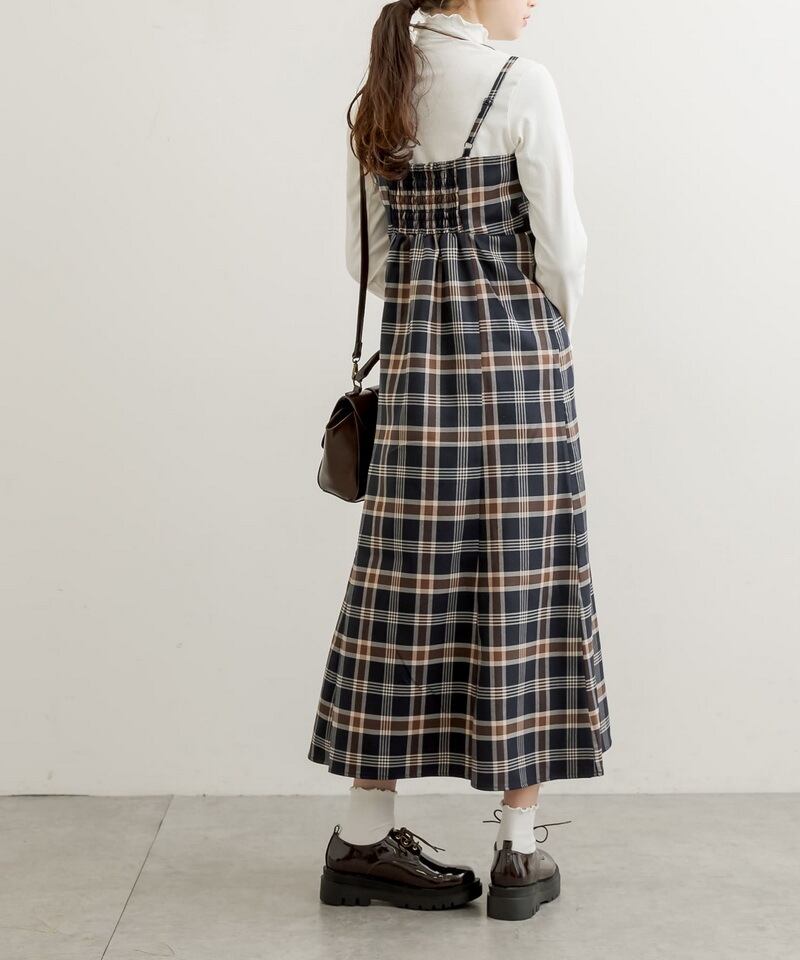 ワンピース ロング ショルダーストラップワンピース ロング丈 スクエアネック ストラップ セミフレア スリム Aライン 大人可愛い シンプル カジュアル 大人 おしゃれ お洒落 大人可愛い 大人女子 こなれ感 ラフ 抜け感 無地 柄 チェック柄 格子柄 秋 冬 10代 20代 30代 40代 レディース お出かけ 休日 着回し 普段使い 重ね着 モテ フリーサイズ 黒 ブラック 茶色 ブラウン 灰色 グレー 秋カラー