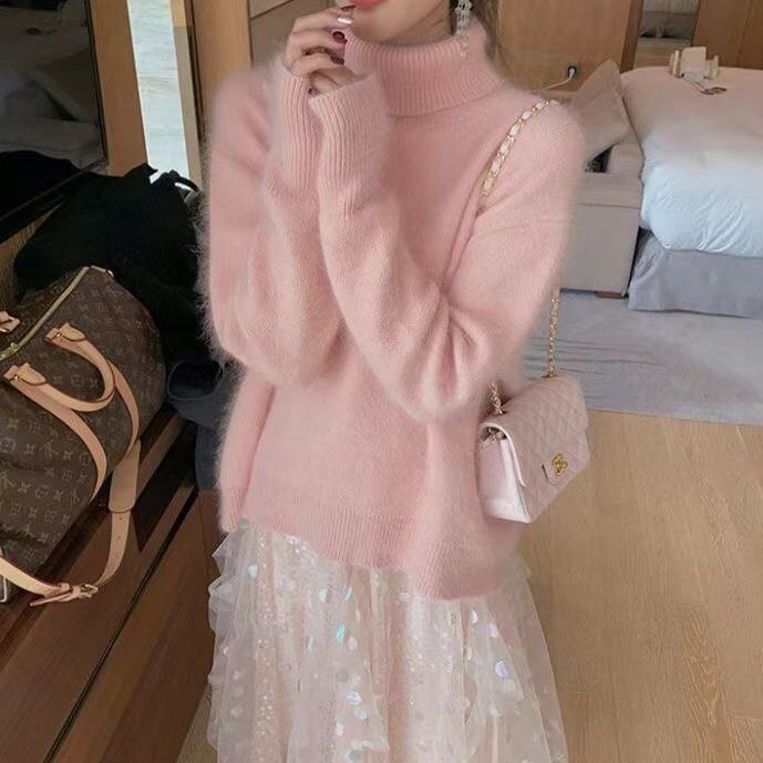 トップス セーター プルオーバー 袖あり 長袖 萌袖 タートルネック ワイド もこもこ ふわふわ ニット 厚手 きれいめ シンプル カジュアル おしゃれ 大人可愛い 大人女子 こなれ感 ラフ キュート ルーズ とろみ感 無地 冬 20代 30代 40代 50代 60代 レディース デート お出かけ 楽ちん 暖かい 防寒 モテ 定番 S M L XL 2XL ホワイト オフホワイト ピンク ダークピンク