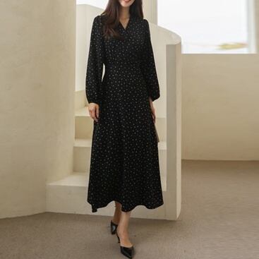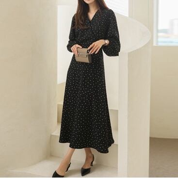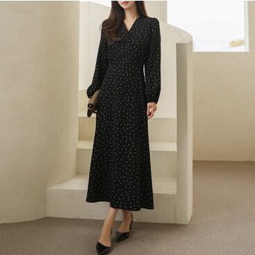 ワンピース ワンピドレス ロング ロング丈 袖あり 長袖 Vネック クロス 襟なし セミフレア スリム タイト Aライン ウエストマーク ハイウエスト かわいい きれいめ シンプル 大人 上品 おしゃれ お洒落 レトロ 大人可愛い 大人女子 こなれ感 マニッシュ ガーリー モード系 エレガント モダン 主役級 存在感 とろみ感 抜け感 柄 花柄 小花柄 フラワー 春 秋 20代 30代 40代 50代 60代 レディース 通学 デート お出かけ 普段使い お揃い モテ S M L 黒 ブラック