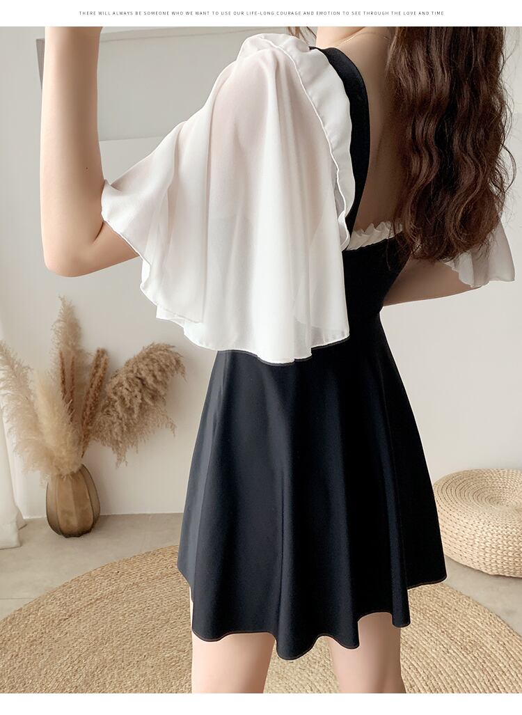 水着 スイムウェア ワンピース水着 ワンピースタイプ ワンピース 袖あり 半袖 スクエアネック シアー 透け感 シースルー レースアップ 編み上げ フリル Aライン Aラインワンピース シンプル 無地 ブラック 黒 M L XL 2XL 海 海水浴 ビーチ リゾート バカンス プール ナイトプール 温泉 サウナ 海デート デート フェミニン 甘め かわいい 可愛い モノトーン 10代 20代 30代 体型カバー トレンド トレンド感 レディース 韓国ファッション 韓国スタイル 韓国コーデ 韓国