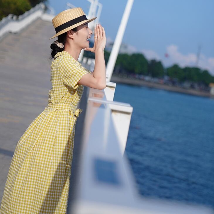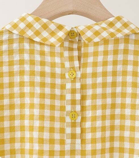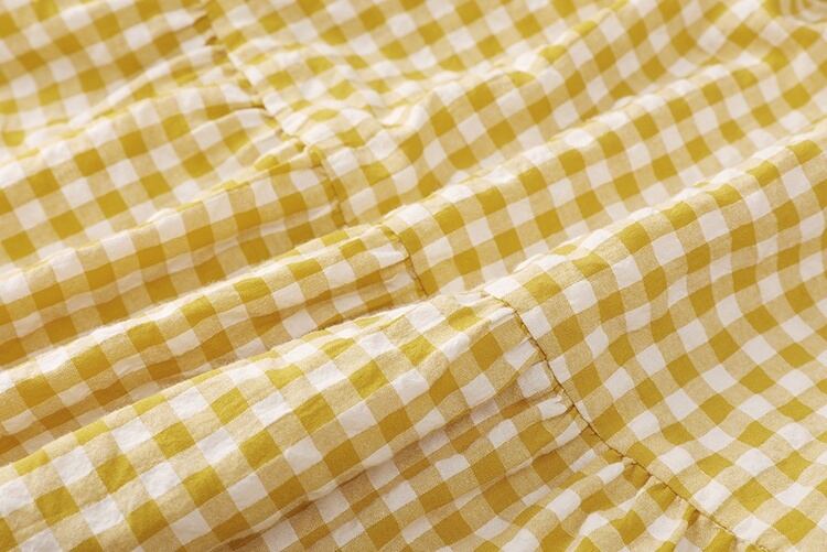 ナチュラルな雰囲気のイエローギンガムチェックのワンピースです。
