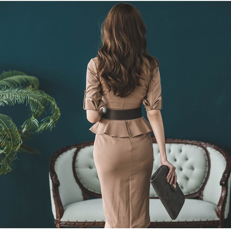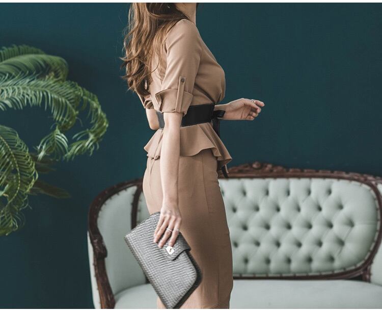 ワンピース セットアップ スーツ タイトスカート 膝丈 ひざ丈 膝上 袖あり 5分袖 五分袖 Vネック スリム タイト 細身 アシンメトリー 切り替えデザイン フリル リボン ベルト ウエストマーク ウエストリボン きれいめ 大人 おしゃれ かっこいい 大人可愛い 大人女子 こなれ感 ガーリー クール モード系 セクシー エレガント モダン 主役級 存在感 フォーマル 無地 オールシーズン シーズンレス 30代 40代 レディース OL 通勤 デート パーティー イベント モテ 美脚 脚長 S M L
