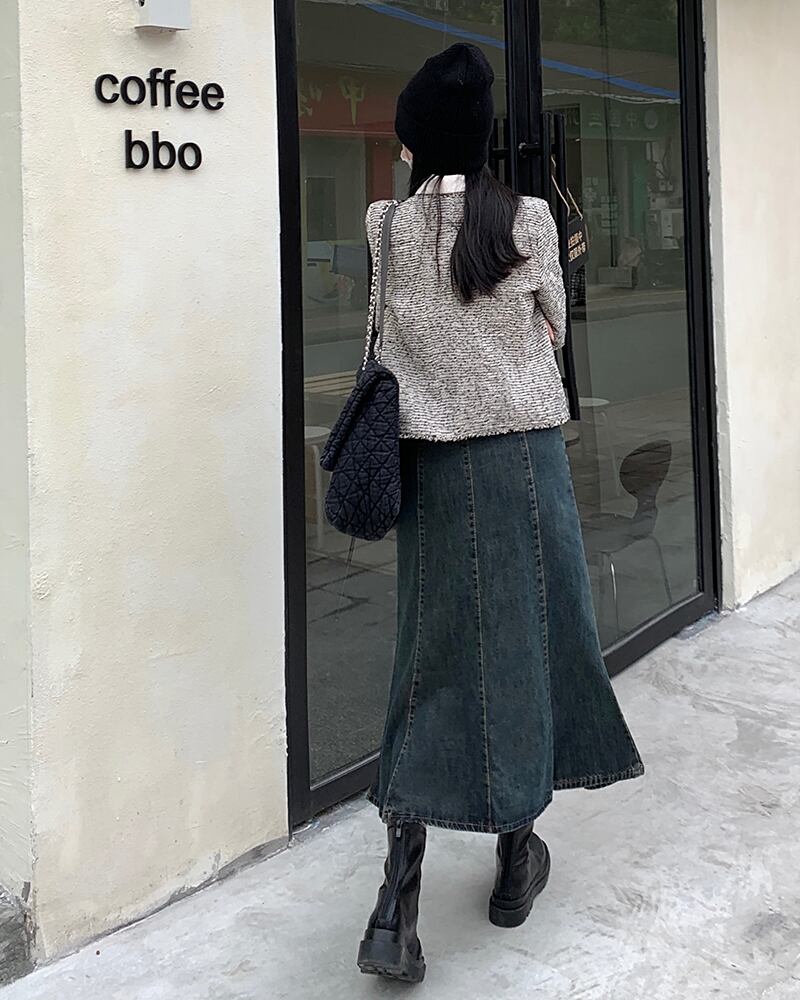 ボトムス スカート ミモレ丈スカート ミモレ丈 デニムスカート デニム ジーンズ マーメイドスカート ヒップスカート シンプル 無地 定番 S M L XL カジュアル お出かけ デート デイリー 普段使い 着回し 秋 冬 ハイウエスト Aライン 大人カジュアル 大人 ママコーデ お散歩 公園 スタイルアップ 美スタイル 細見え 脚長 美脚 10代 20代 30代 韓国 韓国ファッション 韓国スタイル 韓国コーデ おしゃれ 長め丈 長め丈スカート レトロ レトロかわいい レトロ可愛い 青 ブルー