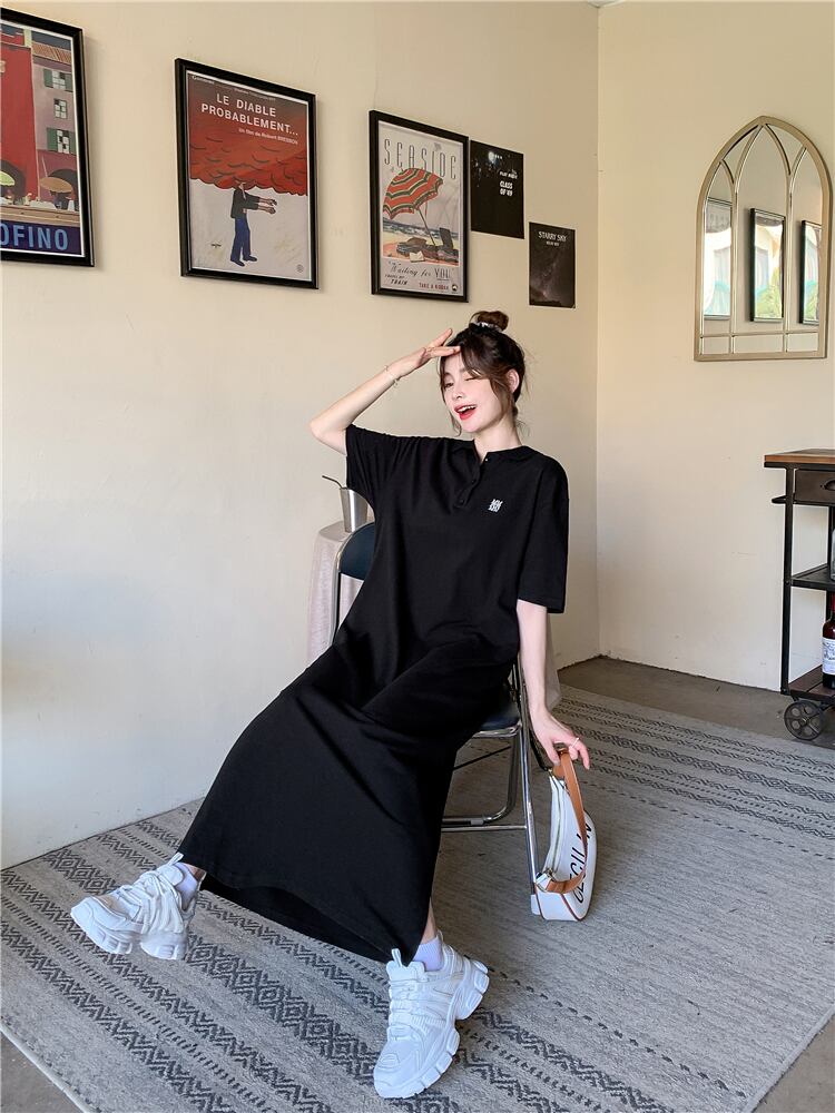 ワンピース ポロシャツワンピース ポロワンピ ポロシャツワンピ ロングワンピース ロング丈 マキシ丈 マキシ丈ワンピース 半袖 半袖ワンピース スリット シンプル 無地 ブラック ホワイト ピンク 黒 白 桃 L XL 2XL 3XL 大きいサイズ プラスサイズ オーバーサイズ ラフ ルーズ ゆる ゆったり 楽ちん スポーティー ストリート カジュアル 大人カジュアル 大人 10代 20代 30代 お出かけ デート デイリー 普段使い 着回し 春 夏 ポロカラー 韓国 韓国コーデ 韓国ファッション
