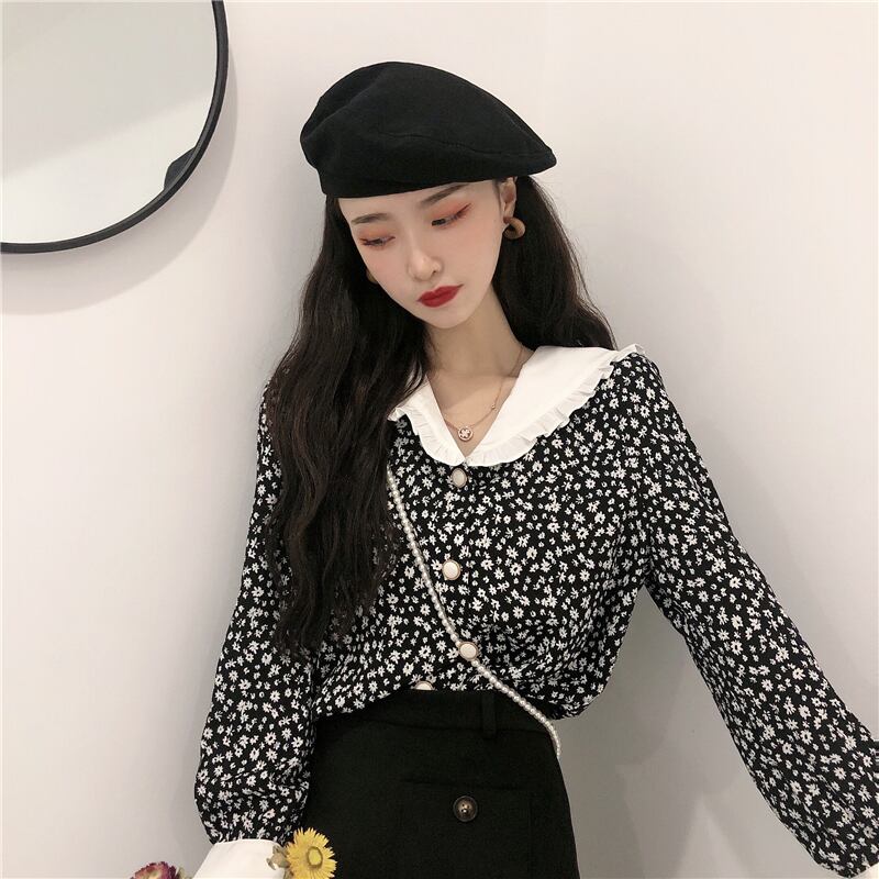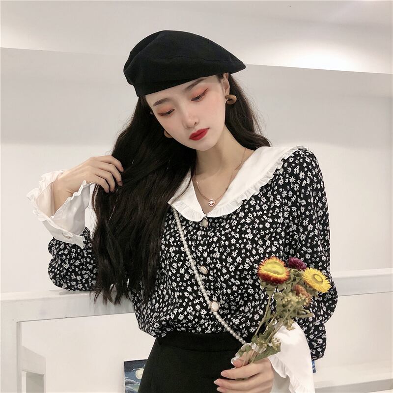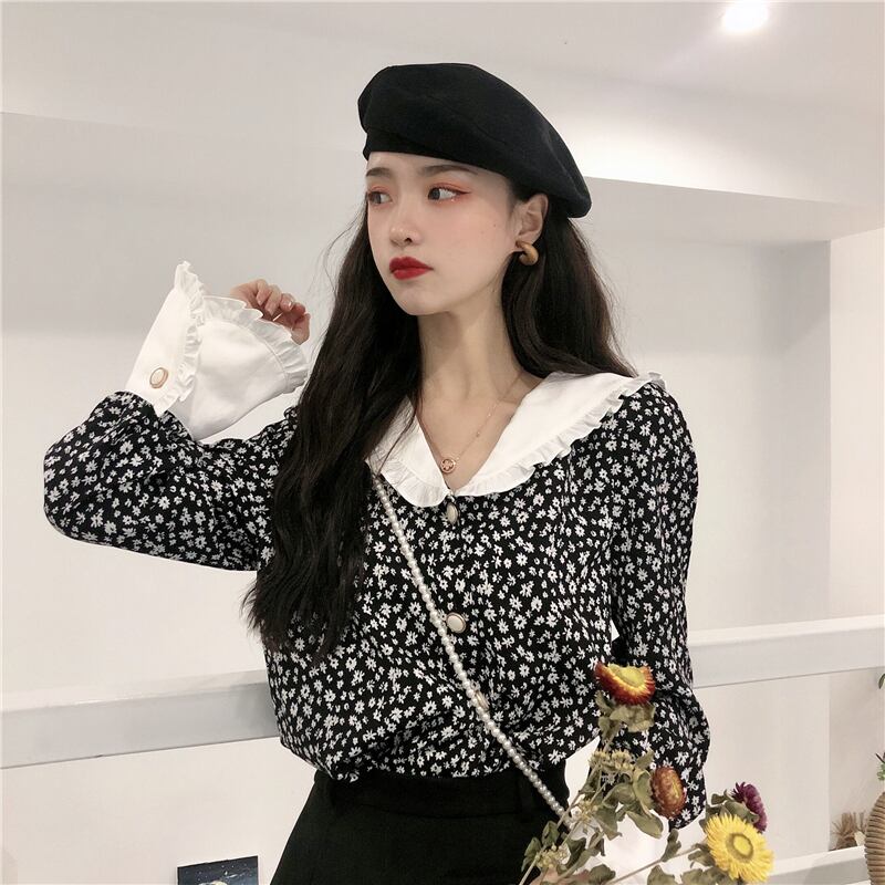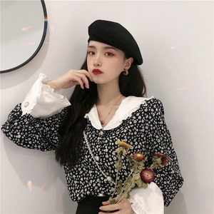 トップス シャツ ブラウス 袖あり 長袖 ボリューム袖 Vネック 襟付き ビッグラペル ストレート Iライン 切り替えデザイン ドッキング フリル 前開き カジュアル 上品 おしゃれ お洒落 レトロ 大人可愛い 大人女子 こなれ感 マニッシュ ラブリー キュート ガーリー 個性的 モード系 モダン 主役級 存在感 フォーマル 抜け感 柄 花柄 小花柄 フラワー 春 秋 20代 30代 40代 レディース デート お出かけ モテ S M L XL ゆったり ゆる 黒 ブラック