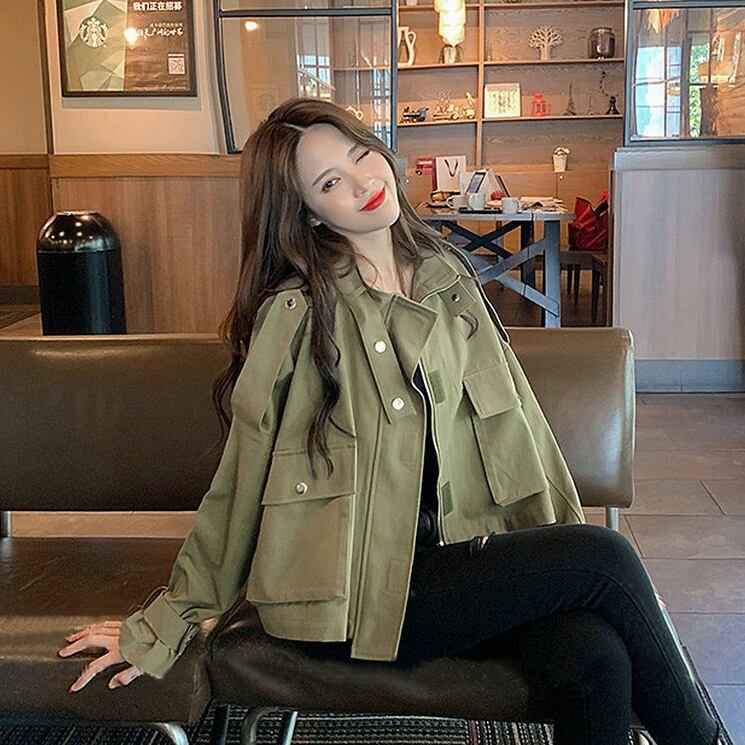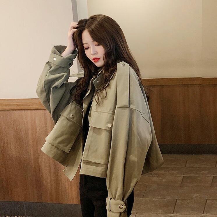 アウター ジャケット シャンパー 上着 ショート ショート丈 袖あり 長袖 襟付き スタンドカラー ストレート ワイド Iライン ポケット 前開き ビンテージ 大人可愛い カジュアル おしゃれ お洒落 かっこいい こなれ感 ラフ ボーイッシュ ルーズ 無地 春 秋 レディース 普段使い 重ね着 S M L XL ゆったり ゆる 白 ホワイト 緑 グリーン 茶色 ブラウン
