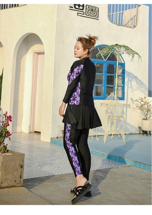 水着 スイムウェア 2ピース 2点セット 2ピース 長袖 長袖水着 ロングスリーブ ロングパンツ ロング丈 ブルー ブラック 青 黒 パープル 紫 3XL 4XL 5XL 6XL 大きいサイズ プラスサイズ 体型カバー 日焼け防止 ゆったり ゆる 楽ちん 海 海水浴 ビーチ リゾート バカンス プール ナイトプール 温泉 サウナ 海デート デート デザインブロック 20代 30代 40代 露出控えめ 露出少なめ 大人 カジュアル レディース ペプラム 韓国 韓国ファッション 韓国スタイル 韓国コーデ