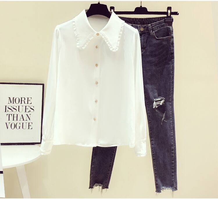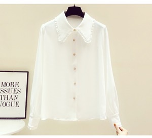 フリル付きのビッグ襟付きのホワイトシャツです。