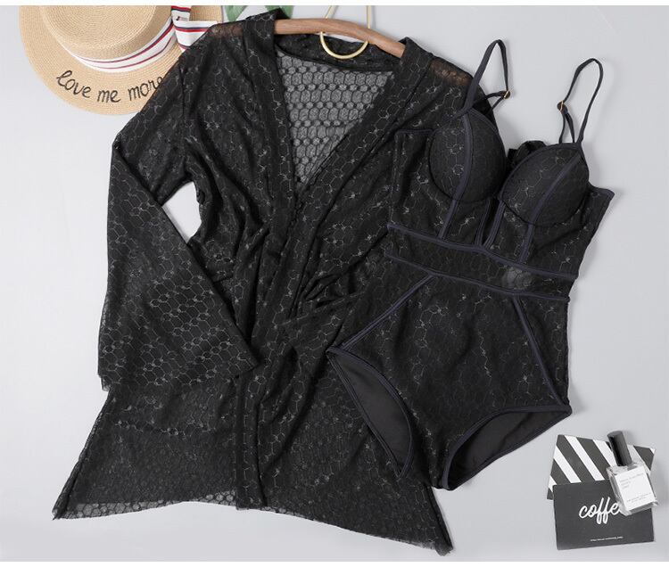 レース使いがセクシーな水着と羽織りの2ピースセット