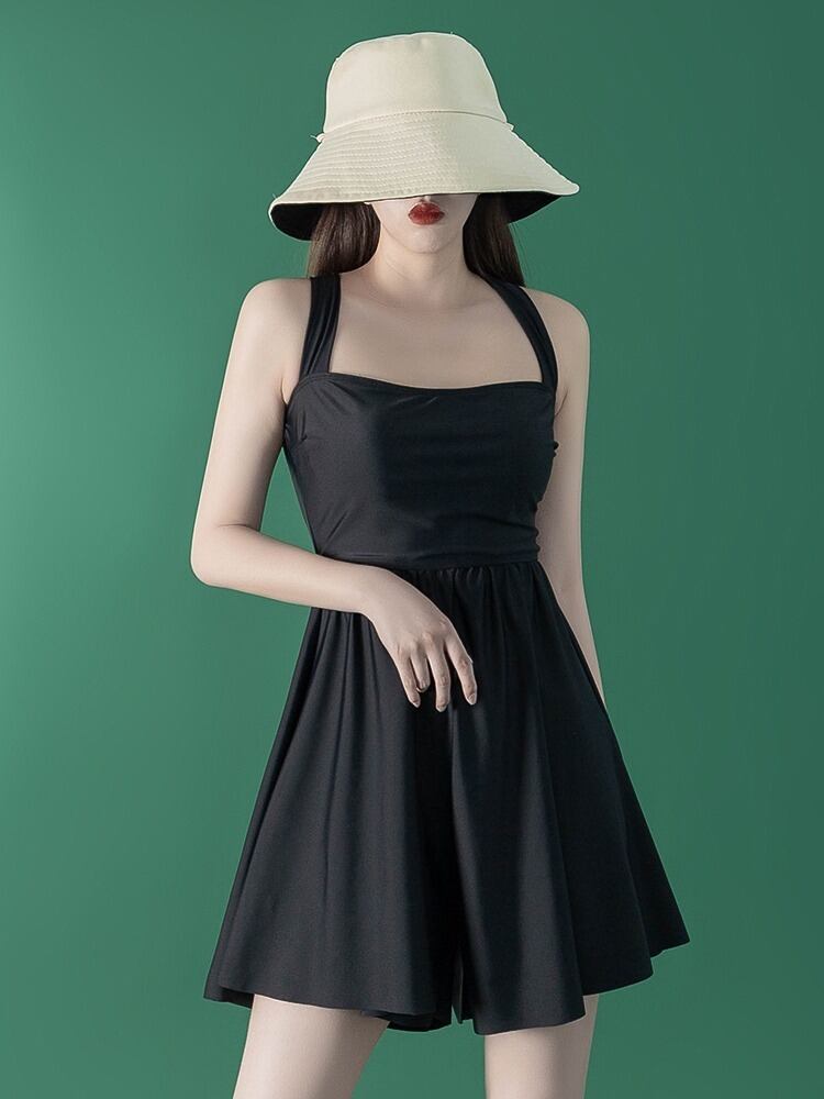水着 スイムウェア ワンピース ワンピース水着 ワンピースタイプ クロスストラップ バッククロスストラップ バッククロス Aライン フレアスカート フレア スクエアネック シンプル 無地 ブラック 黒 M L XL 20代 30代 海 海水浴 ビーチ リゾート バカンス プール ナイトプール 温泉 サウナ 海デート デート 夏 シック 上品 クラシカル フェミニン コンサバ 大人 大人かわいい 大人可愛い 体型カバー スタイルアップ 美スタイル レディース 韓国 韓国ファッション 韓国スタイル 韓国コーデ