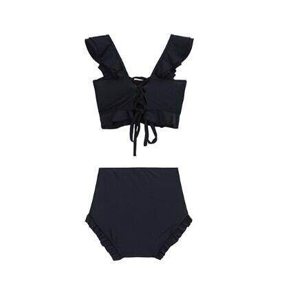 さり気ないフリルやバックの編み上げが大人かわいい水着?