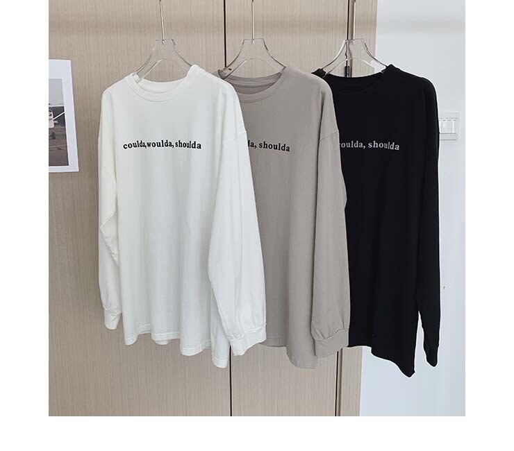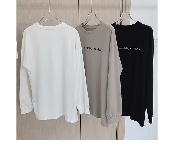 トップス Tシャツ オーバーサイズTシャツ オーバーサイズ 長袖 長袖Tシャツ ロングスリーブ ルーズ ラフ ビッグシルエット クルーネック ラウンドネック Uネック シンプル 無地 英字 グレー ブラック ホワイト 灰 黒 白 ワンサイズ カジュアル 10代 20代 楽ちん ゆる ゆったり お出かけ デート デイリー 普段使い 着回し ストリート メンズライク トレンド トレンド感 おしゃれ こなれ感 韓国 韓国ファッション 韓国スタイル 韓国コーデ 体型カバー コットンTシャツ 綿 綿Tシャツ 白T