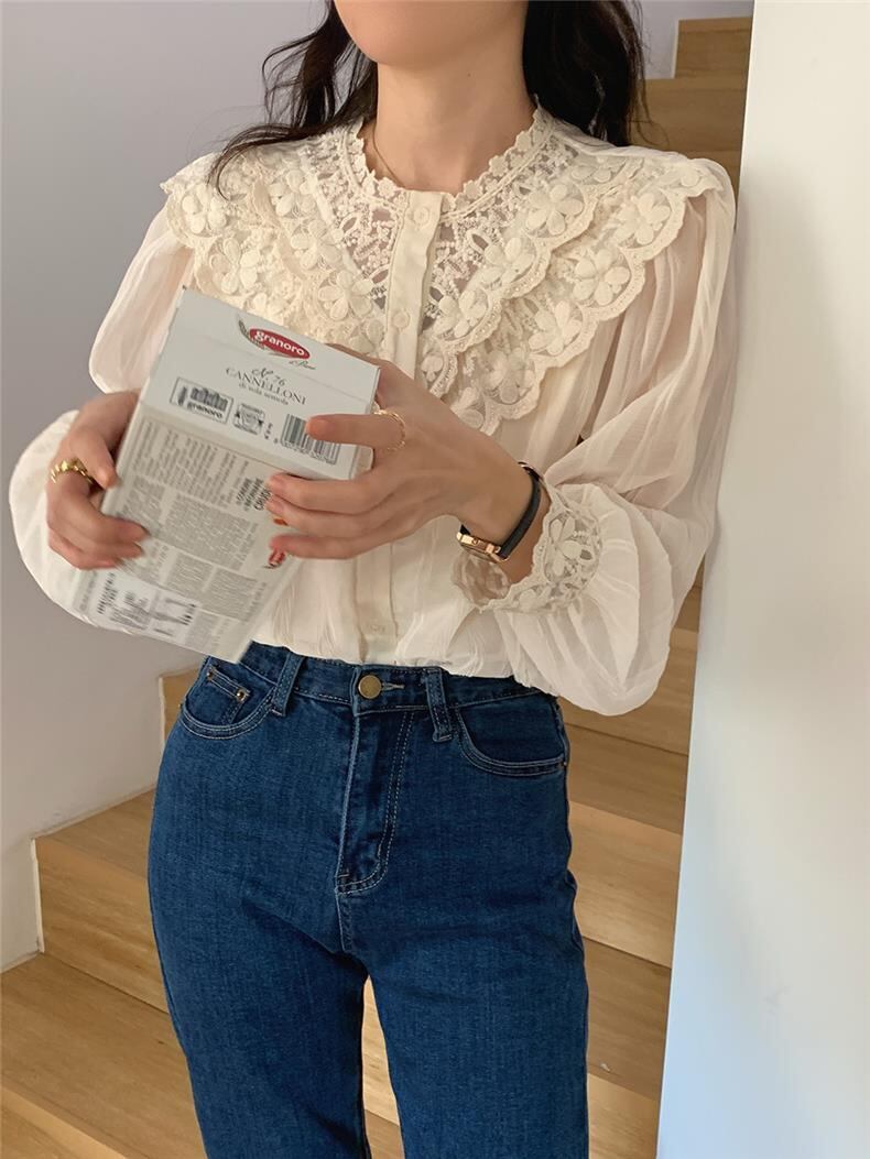 トップス ブラウス シャツ シフォンブラウス シフォンシャツ 長袖ブラウス 長袖 ロングスリーブ 長袖シャツ シアー 透け感 シースルー ふんわり袖 ふんわり ストライプ フロントボタン ベージュ S M L フェミニン お出かけ デート デイリー 普段使い 着回し レイヤード 刺繍 刺繍レース 上品 甘め かわいい 可愛い 大人かわいい 大人可愛い 大人 レトロかわいい レトロ可愛い フレンチ ガーリー キュート 20代 30代 シック 上品 清楚 レディース 韓国 韓国ファッション 韓国コーデ