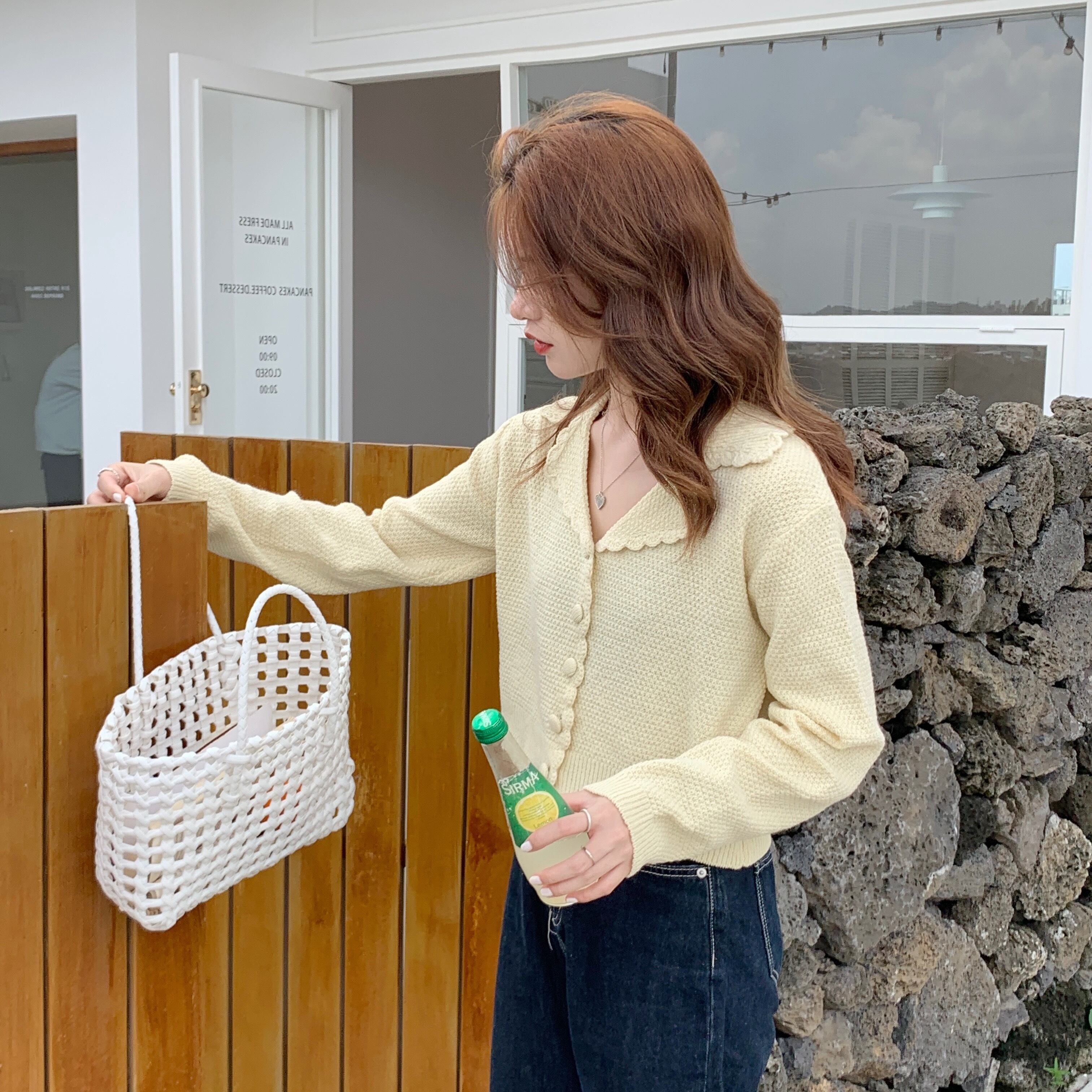 ガーリーなデザインがかわいいニットカーディガン