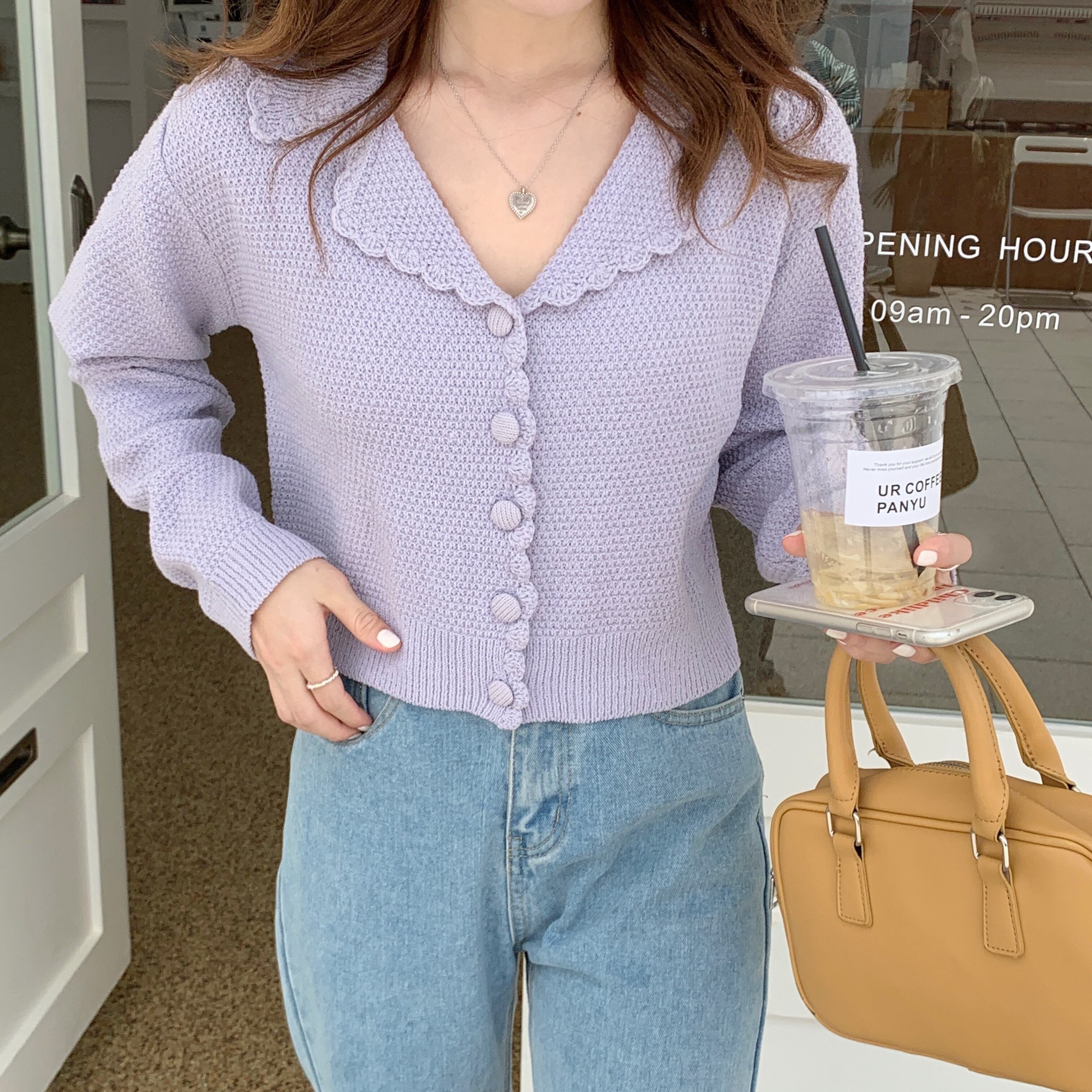 トップス カーディガン ニットカーディガン ニットカーデ フロントボタン ボタンカーディガン ニットレース レースニット 長袖 長袖カーディガン ロングスリーブ 短め丈 襟 パープル オフホワイト イエロー 紫 白 黄 M L XL 2XL 3XL 大きいサイズ プラスサイズ 10代 20代 ガーリー キュート フェミニン カジュアル かわいい 可愛い レトロ レトロかわいい レトロ可愛い お出かけ デート デイリー 普段使い 着回し 春 秋 おしゃれ きれい色 パステルカラー パステル 韓国