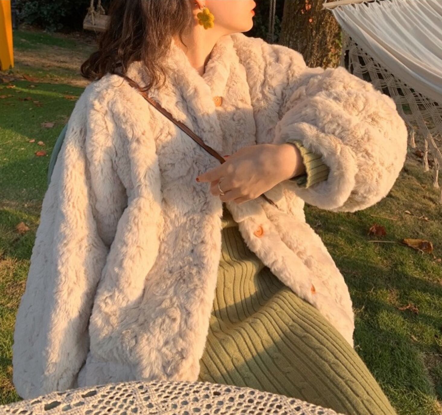 ウサギのようなフェイクファーのふわふわジャケットです。