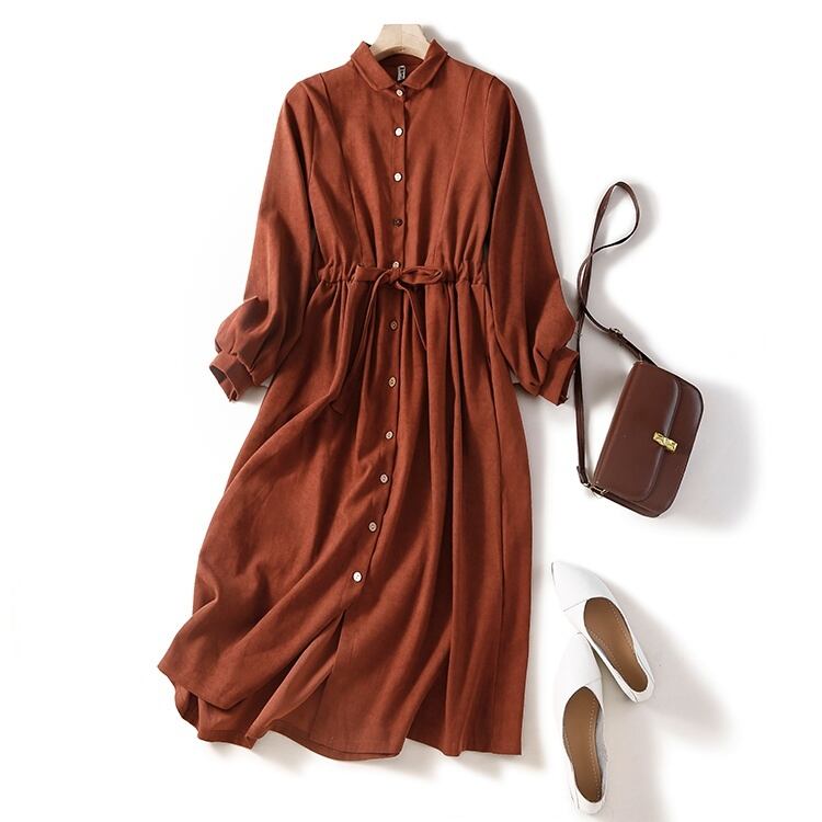 大人女子のための長袖シャツワンピースです。
