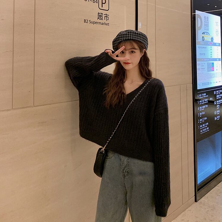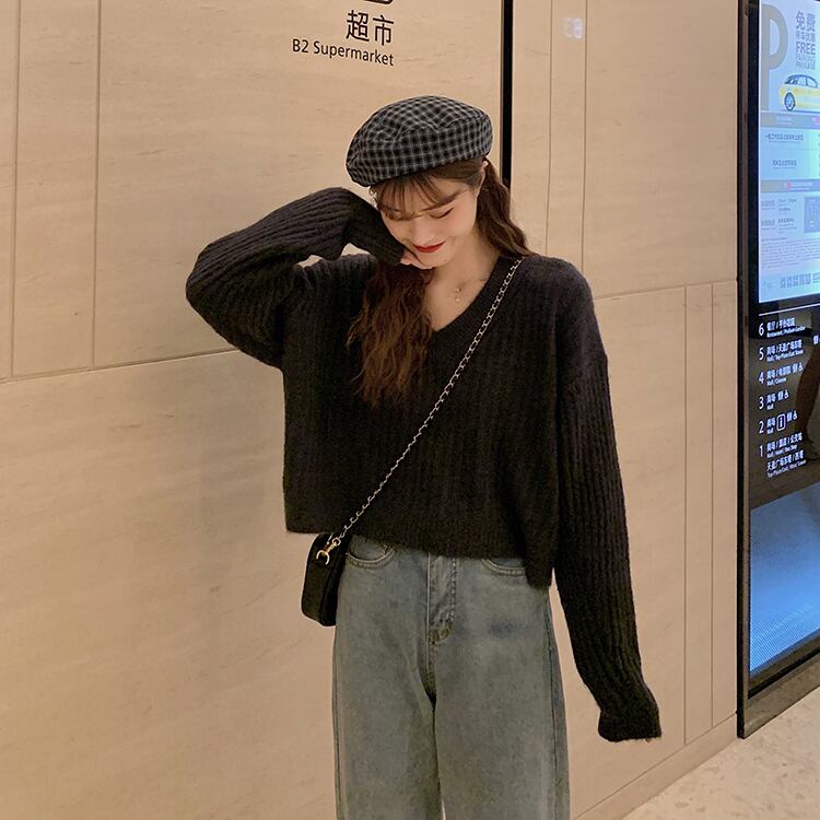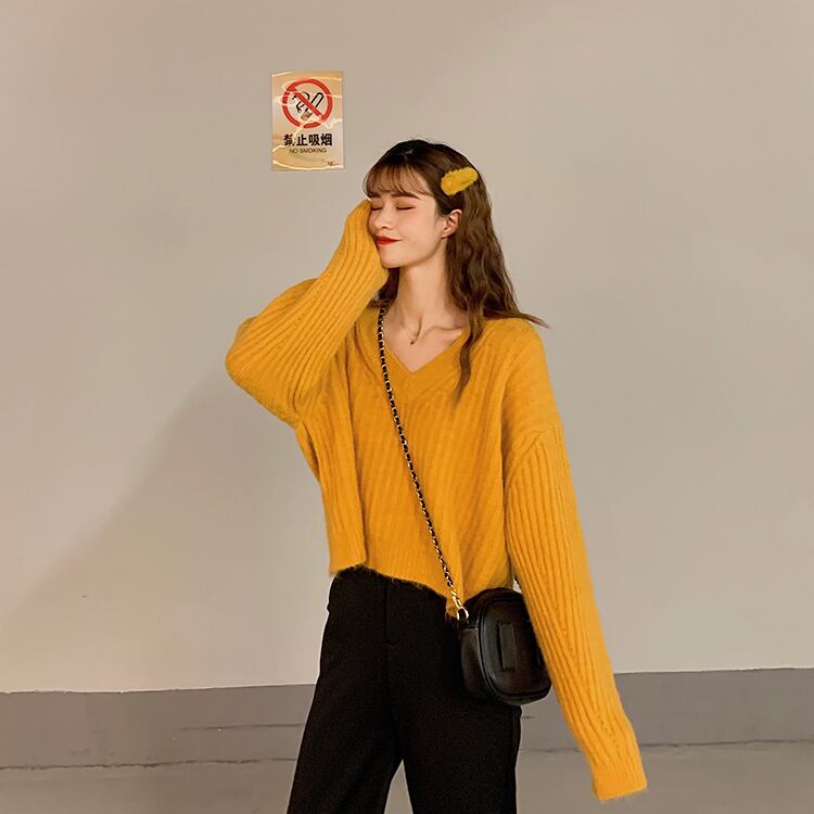 トップス ニットソー セーター ショート ショート丈 袖あり 長袖 ボリューム袖 Vネック 襟なし ワイド リボン バックリボン バックシャン バックコンシャス ニット かわいい 大人可愛い シンプル カジュアル おしゃれ お洒落 大人女子 こなれ感 ラフ キュート ガーリー ルーズ 主役級 存在感 抜け感 無地 秋 冬 10代 20代 30代 レディース デート お出かけ モテ S M L ブラック イエロー