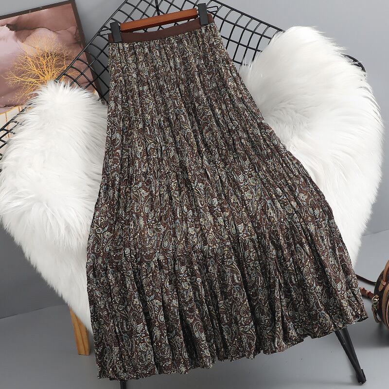 スカート ボトムス ロングスカート プリーツスカート ロング ロング丈 フレア Aライン プリーツ ウエストマーク ハイウエスト 裏地付 かわいい きれいめ カジュアル 大人 おしゃれ お洒落 かっこいい レトロ アジアン 大人可愛い 大人女子 こなれ感 ルーズ エレガント モダン 存在感 とろみ感 抜け感 柄 ペイズリー柄 オールシーズン シーズンレス エイジレス レディース デート お出かけ リゾート 普段使い 楽ちん モテ S M L XL ブラック ブラウン 水色