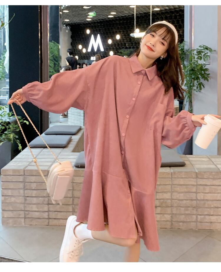 ワンピース シャツワンピース シャツワンピ コーデュロイ コーデュロイワンピース ミドル丈ワンピース ミドル丈 ひざ丈ワンピース ひざ丈 ボタンワンピース ボタン オーバーサイズ ラフ ルーズ ゆったり ゆる 楽ちん 裾フレア シンプル 無地 ピンク 桃 M L XL 2XL 大きいサイズ プラスサイズ 体型カバー カジュアル ガーリー キュート お出かけ デート デイリー 普段使い デイリーユース 着回し マタニティ ママコーデ ママ 公園 お散歩 ランチ 春 秋 10代 20代 かわいい レディース