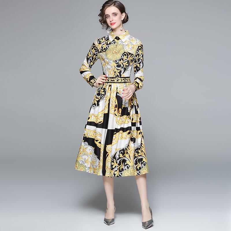 ワンピース シャツワンピース 膝丈 ひざ丈 袖あり 長袖 襟付き フレア スリム タイト シフォン ウエストマーク 切り替えデザイン 前開き 薄手 きれいめ 上品 おしゃれ かっこいい 大人女子 マニッシュ モード系 セクシー エレガント モダン 主役級 存在感 抜け感 柄 春 秋 30代 40代 50代 レディース デート お出かけ ホテル モテ M L XL 2XL