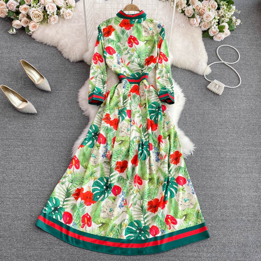 ドレス ワンピース ワンピースドレス ワンピドレス カジュアルドレス ロング ロング丈 袖なし 長袖 襟付き Aライン スリム フレア 細身 ウエストマーク ハイウエスト エレガント きれいめ ゴージャス 華やか 大人 おしゃれ お洒落 主役級 存在感 ラブリー モード系 スタイリッシュ モダン 柄 フラワー リーフ柄 ボタニカル 40代 50代 レディース お出かけ パーティー イベント インスタ映え ステージ 撮影 M L XL 2XL 赤 レッド 緑 グリーン